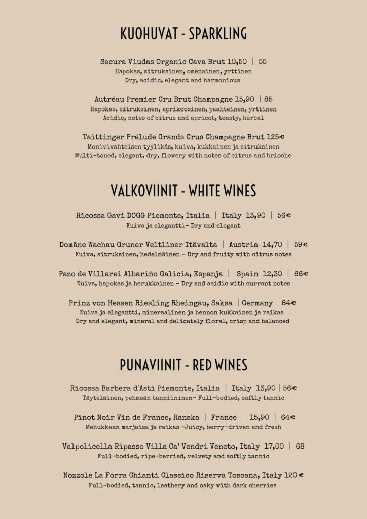 Listalla on tuttuja makuja, huolella valmistettuja annoksia ja suussa sulavia jälkiruokia.